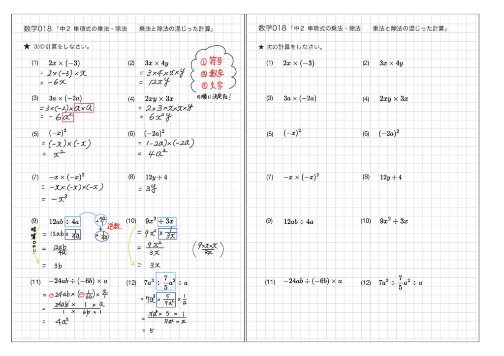 基礎基本を中心にし、必要に応じて、思考力を養う応用問題にも取り組みます。