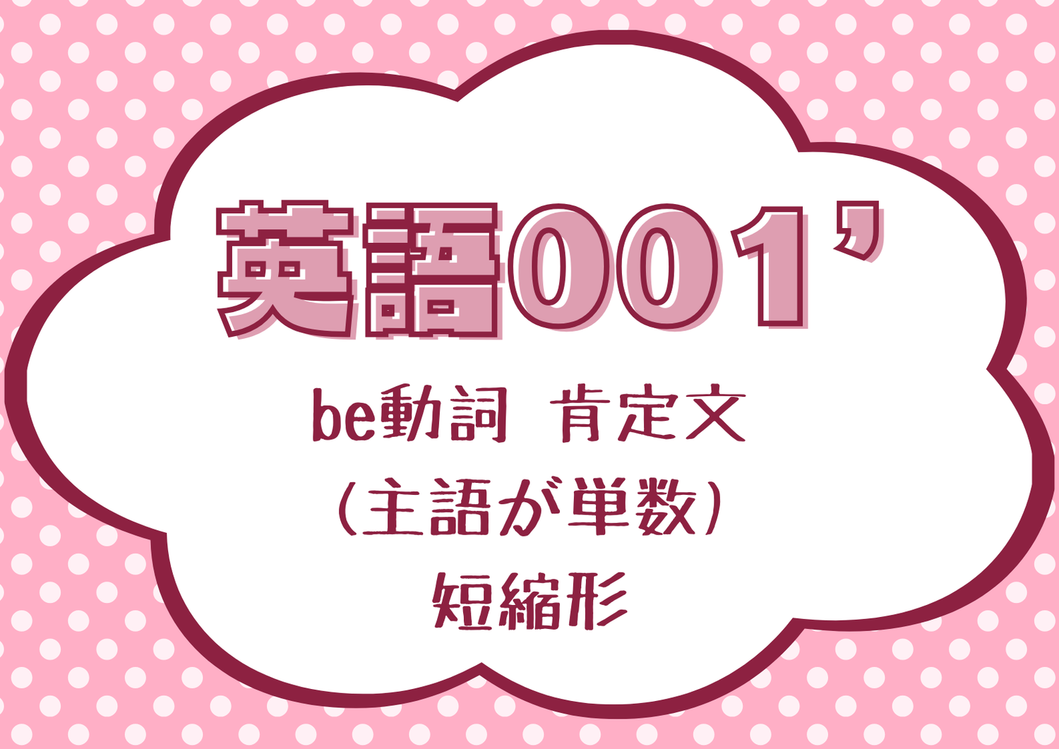 英語001’「be動詞 肯定文 (主語が単数) 短縮形」