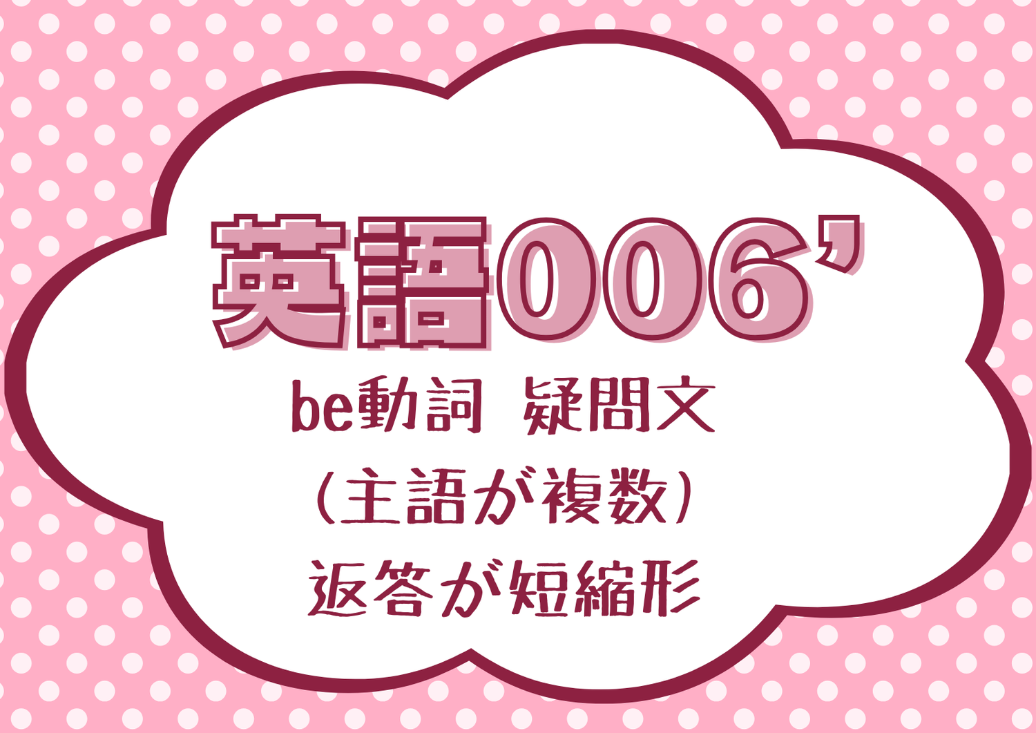 英語006′ 「be動詞 疑問文 (主語が複数) 返答が短縮形」 2026 1/22 English 英語 2025-12-302026-01-22 英語006’「be動詞 疑問文 (主語が複数) 返答が短縮形」ダウンロード English 英語 よかったらシェアしてね! URLをコピーしました! URLをコピーしました! 英語006 「be動詞 疑問文 (主語が複数)」 英語007 「一般動詞 肯定文 (主語がI,You)」 この記事を書いた人 MatsuoNobuya 代表 トモコラボ 代表 神戸市在住 3児の父 20代は民間企業で、30歳から教師に 趣味は低山ハイキング、水泳、美術館に訪れること 関連記事 英語023 「疑問詞③〈When〉 2026-01-24 英語022 「疑問詞②〈What〉一般動詞」 2026-01-24 英語021 「疑問詞①」 2026-01-22 英語020 「文の途中にある情報(副詞)」 2026-01-22 英語019 「文の後ろにつける情報(前置詞)」 2026-01-22 英語018 「文の後ろにつける情報(副詞)」 2026-01-22 英語017 「名詞につく持ち主を表すことば(所有格)」 2026-01-22 英語016 「名詞につけるa,an」 2026-01-22